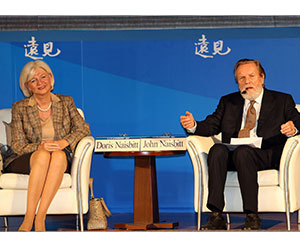 《中國大趨勢》的主軸點出,未來支撐中國發展有八根支柱:分別是一、思想的解放;二、自上而下與自下而上的結合;三、圍地造林讓樹木自由成長;四、摸著石頭過河;五、藝術與學術的發酵;六、融入世界;七、自由與公平;八、目標諾貝爾獎的創新之路。 奈思比也針對第二根支柱中國大陸特有的自上而下與自下而上的結合,提出他們夫婦獨特的命名:垂直民主。 奈思比夫婦指出,西方民主是一個水平架構,公民有投票權,定期選出領導人;而中國獨有的垂直式民主,主要優點就是政治人物可以放下一切為選舉的思惟,能進行長期的策略規劃。在西方人來看,執政的正當性,在於當政者是民選的;在中國人來看,統治的正當性主要是看政績如何。