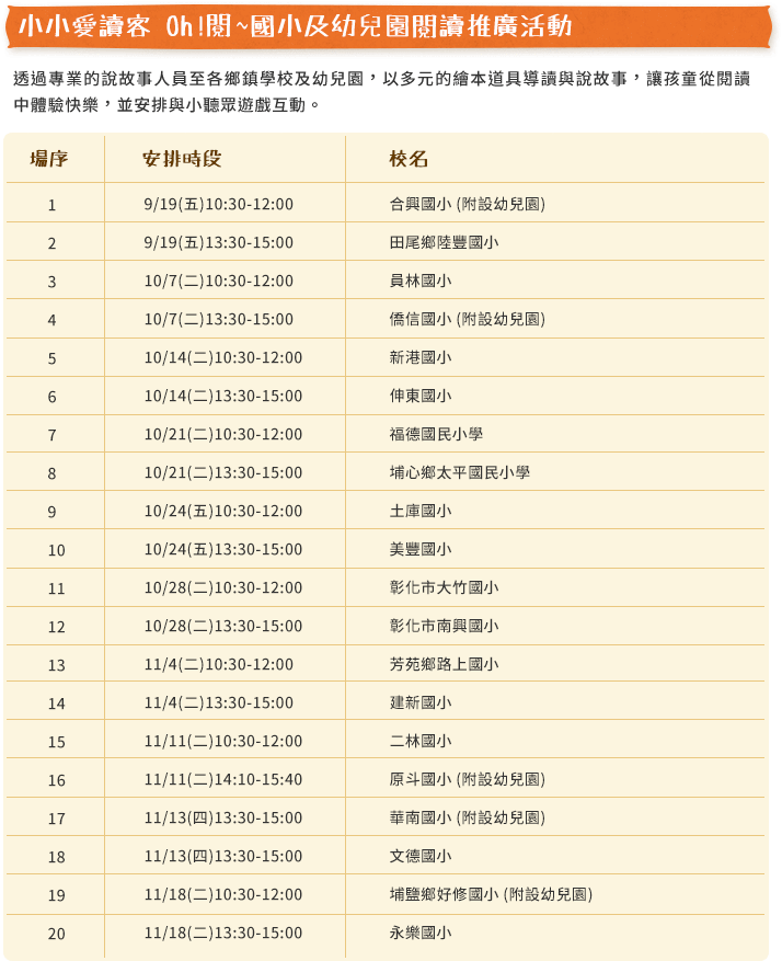 19 11/18(二)10:30-12:00 埔鹽鄉好修國小 (附設幼兒園)