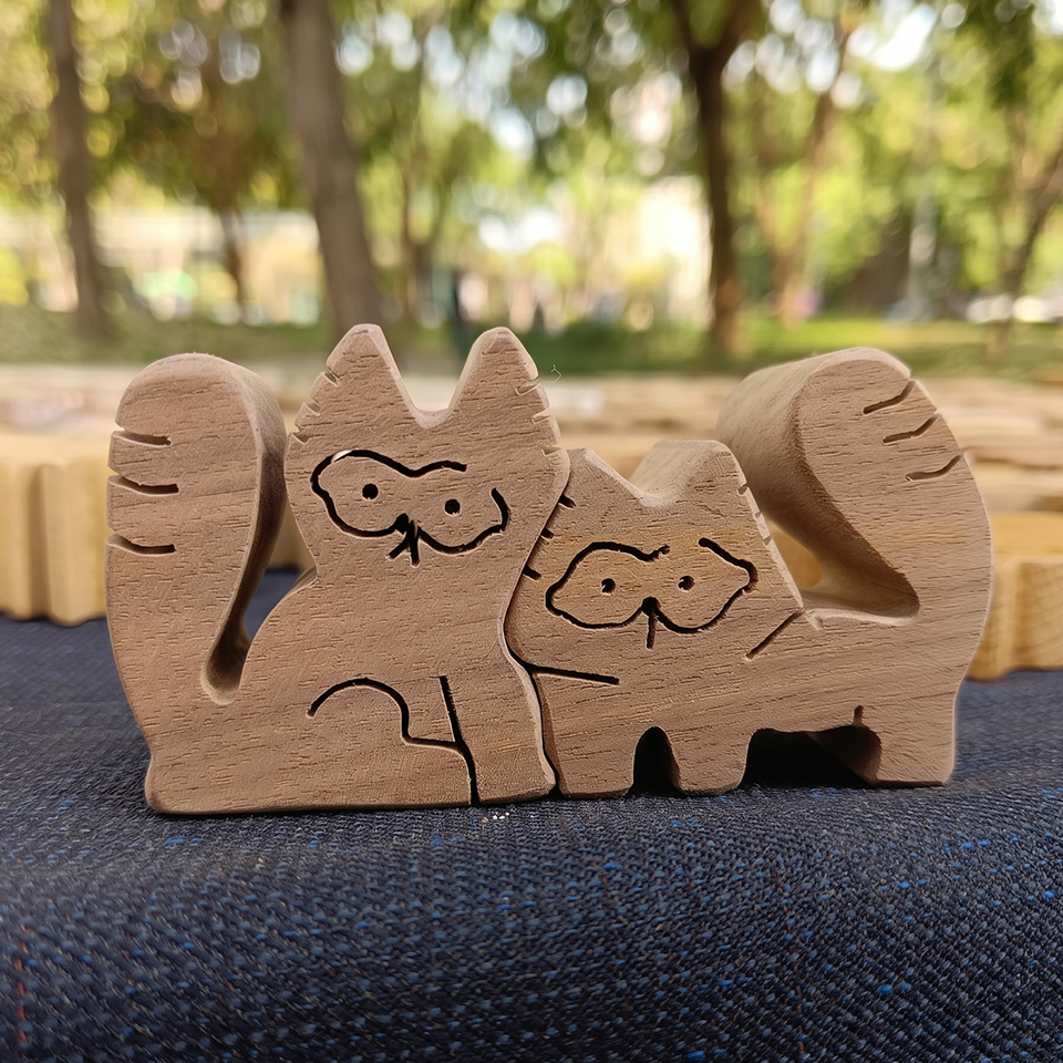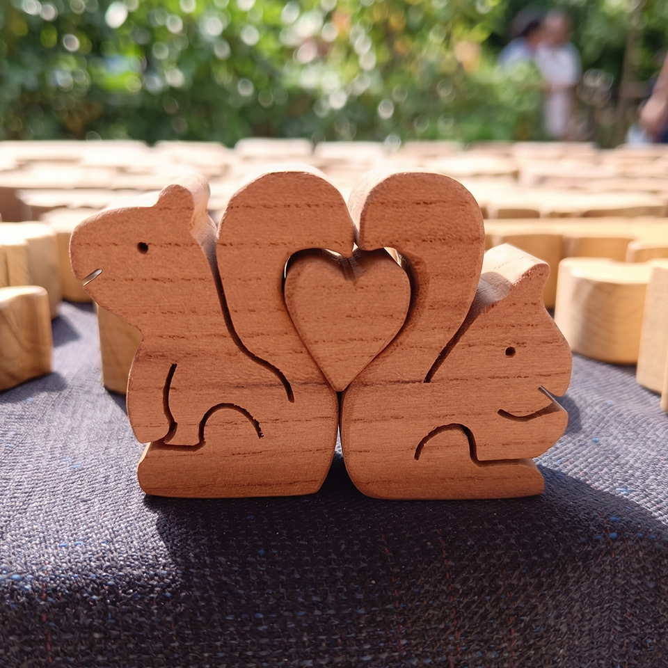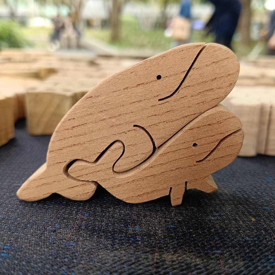 利用毫無價值的邊角木料,設計創作各式動物造型的小木作。